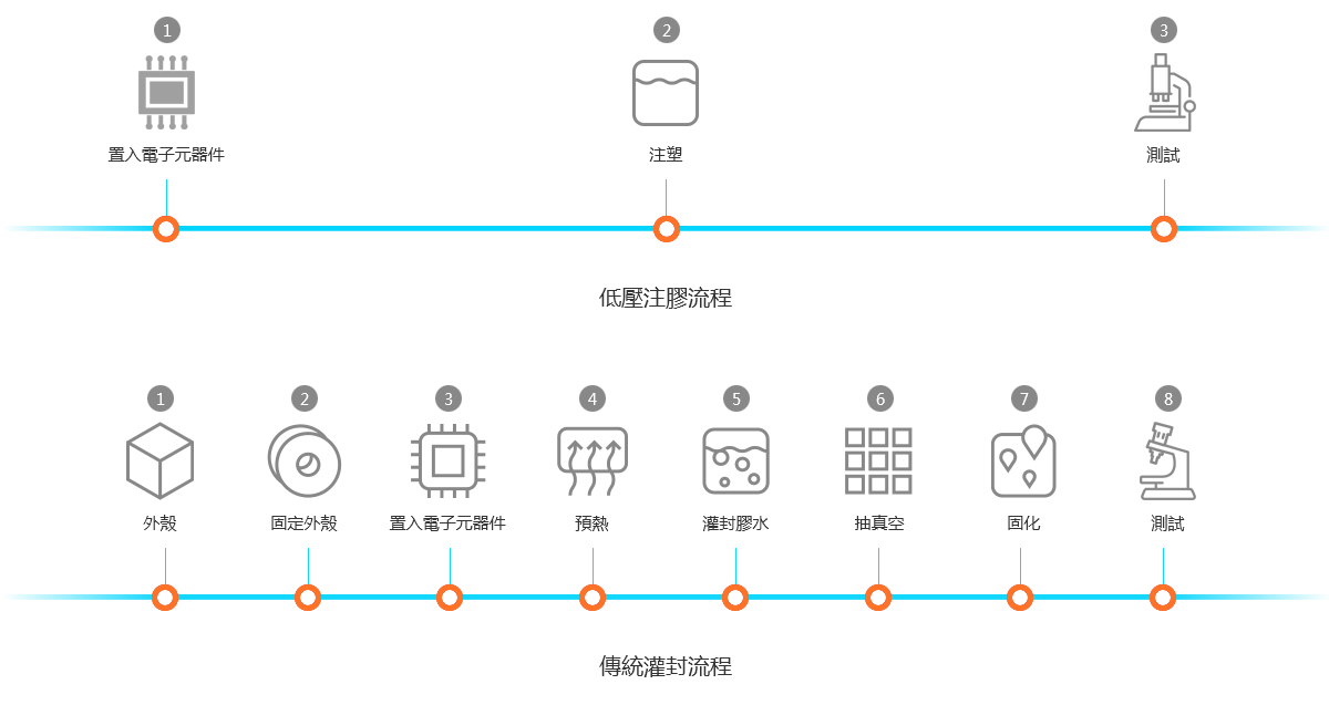 低壓注膠與傳統灌封之流程