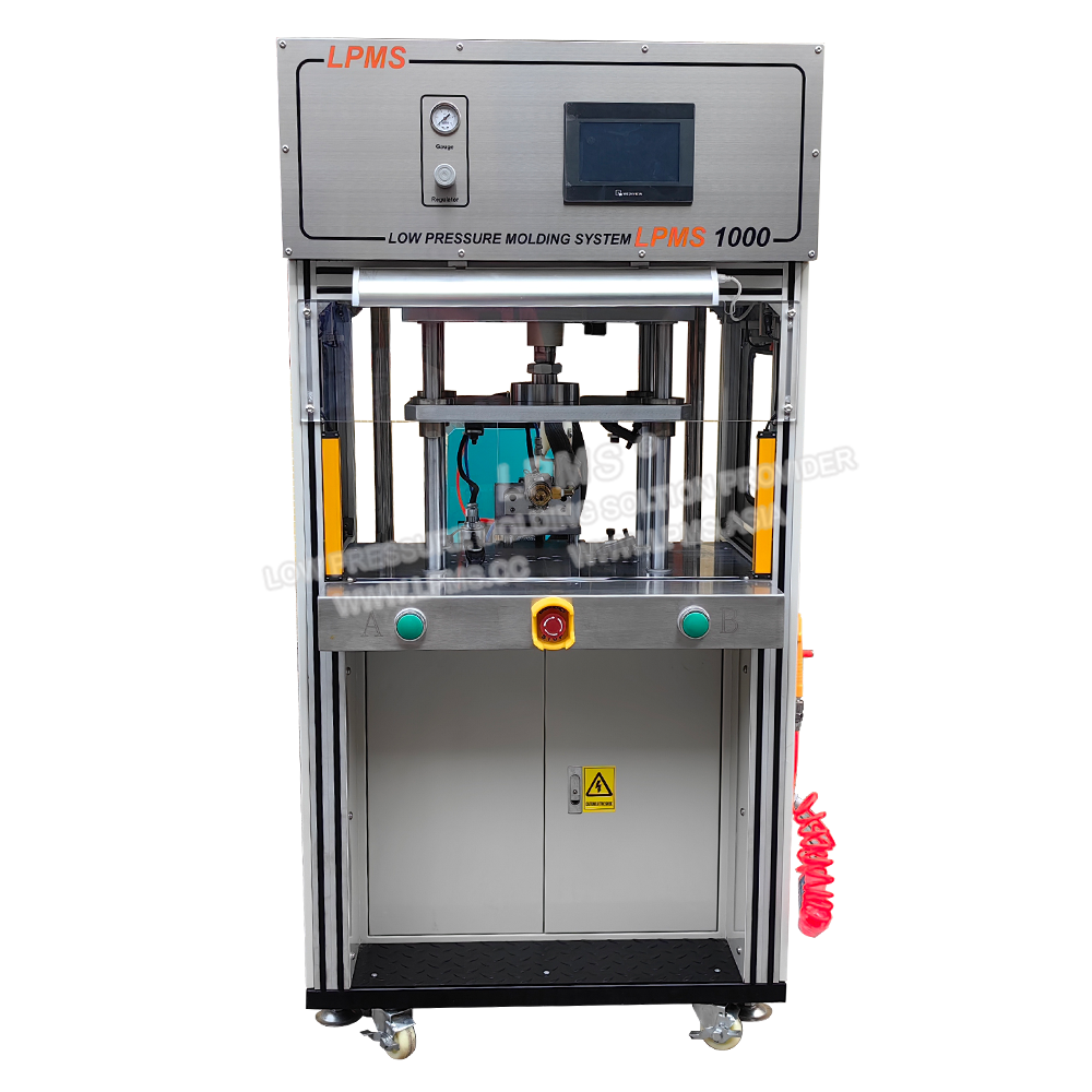 採用氣壓推動式的熱熔膠低壓注膠機、結構緊湊、故障率低,操作簡單快捷,適合打樣和小批量生產。